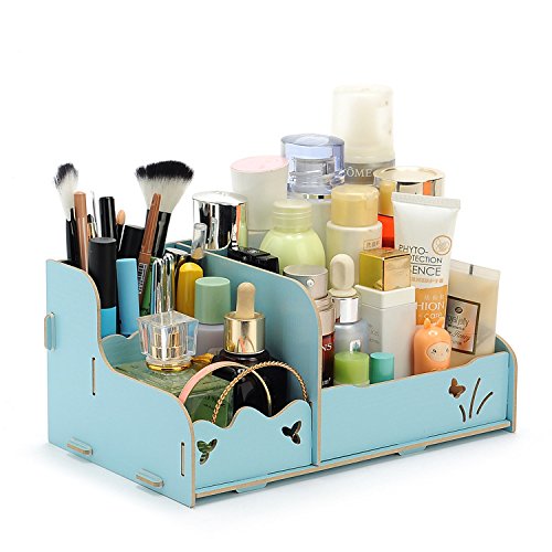 T Queen Diy Wooden Struction Multi Function Makeup Brush And Makeup Cosmetic Jewelry Storage Box Organizer Caddy Blue Buy Online In Guyana At Guyana Desertcart Com Productid 17092984